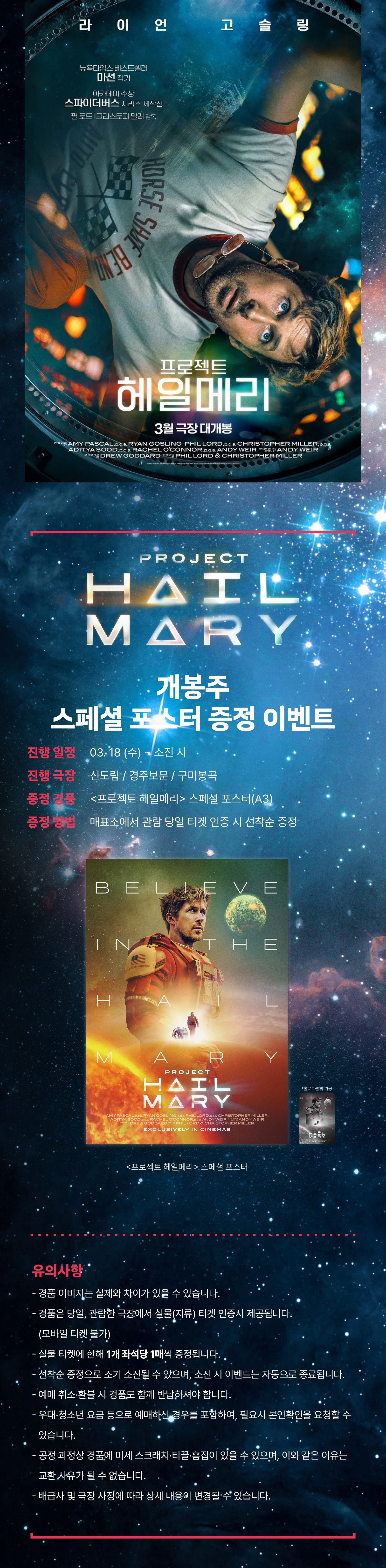 | <프로젝트 헤일메리> 개봉주 스페셜 포스터 증정 이벤트 | 2026.03.18~2026.03.24 | 진행중 |