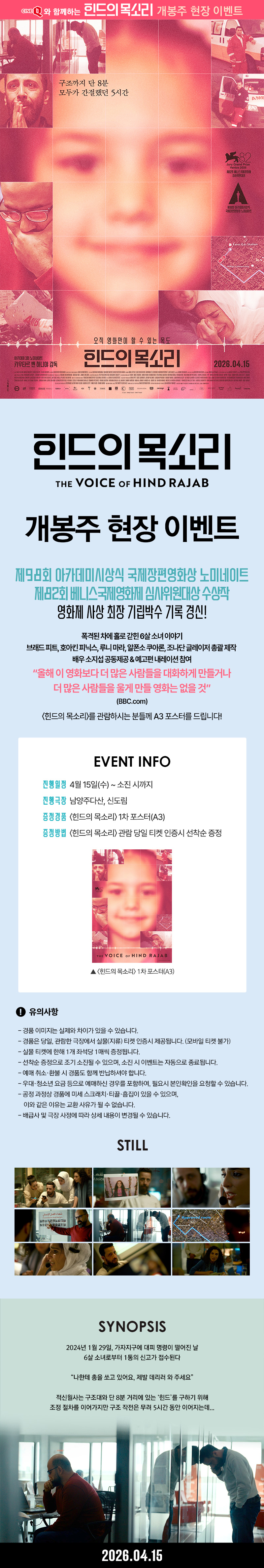| <힌드의 목소리> 개봉 1주차 현장 증정 이벤트 | 2026.04.15~2026.04.21 | 진행중 |