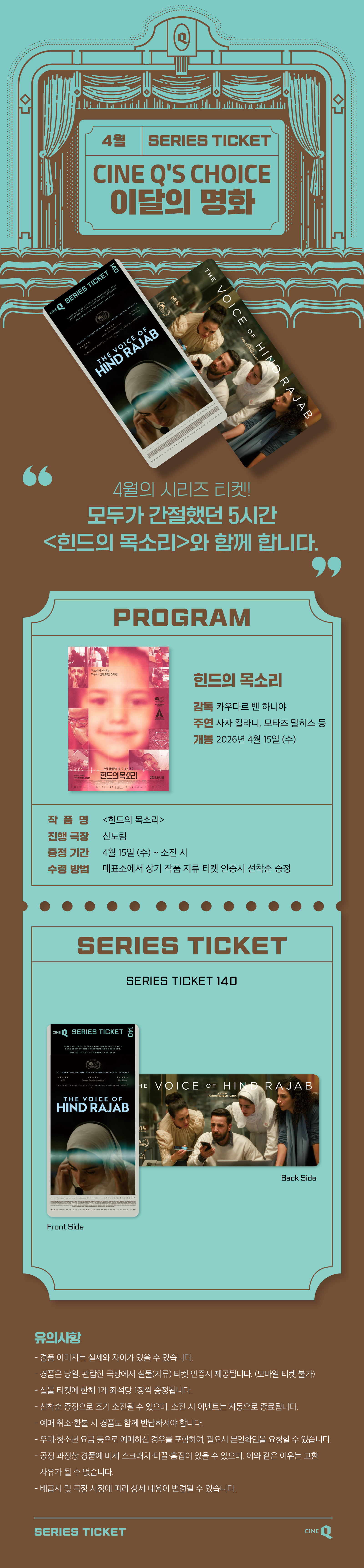 | SERIES TICKET 140 <힌드의 목소리> | 2026.04.15~2026.04.21 | 진행중 |