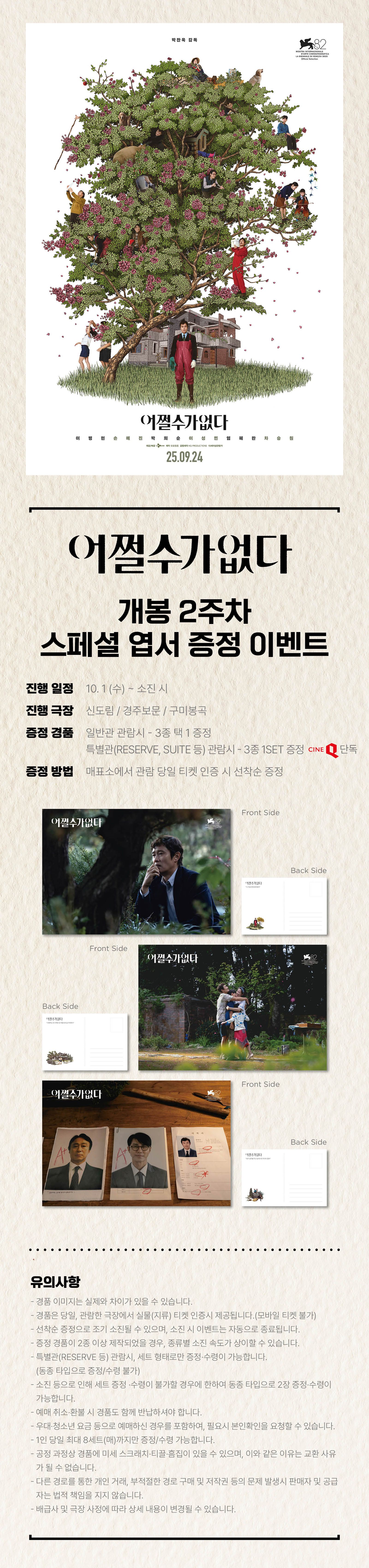 <어쩔수가없다> 개봉 2주차 스페셜 엽서 증정 이벤트 | 2025.10.01~2025.10.07 | 종료 |