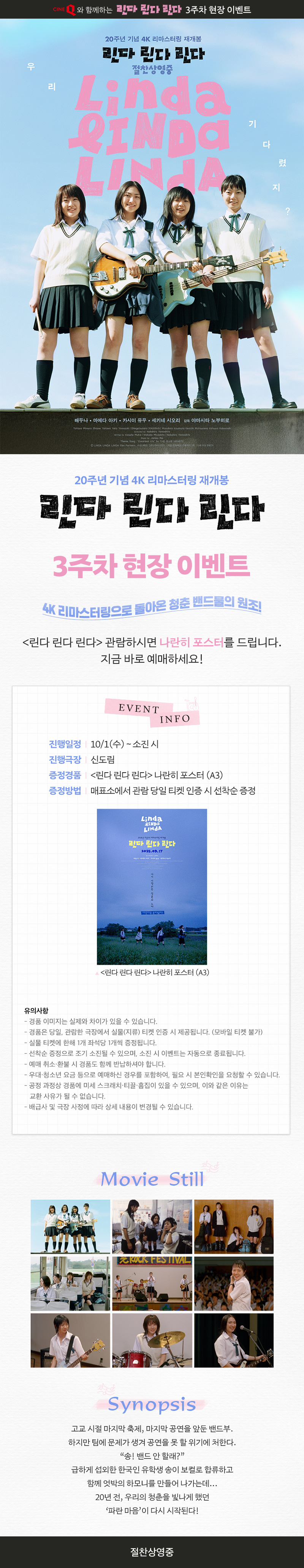 <린다 린다 린다> 개봉 3주차 현장 이벤트 | 2025.10.01~2025.10.07 | 종료 |