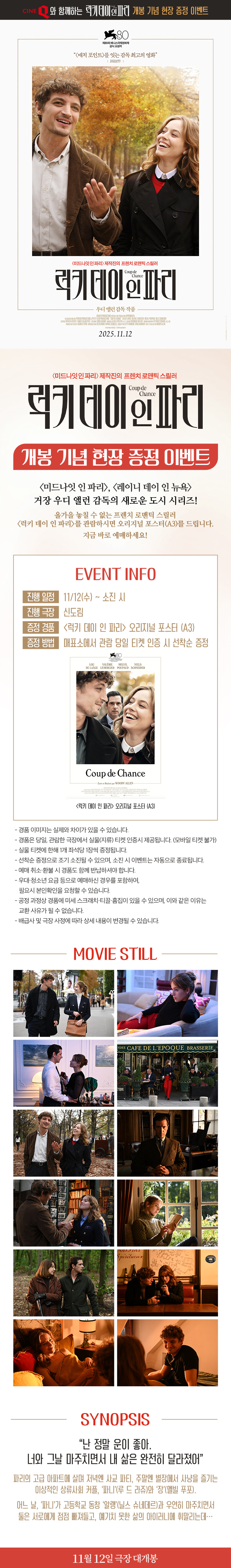 | <럭키 데이 인 파리> 개봉 기념 현장 이벤트 | 2025.11.12~2025.11.18 | 진행중 |