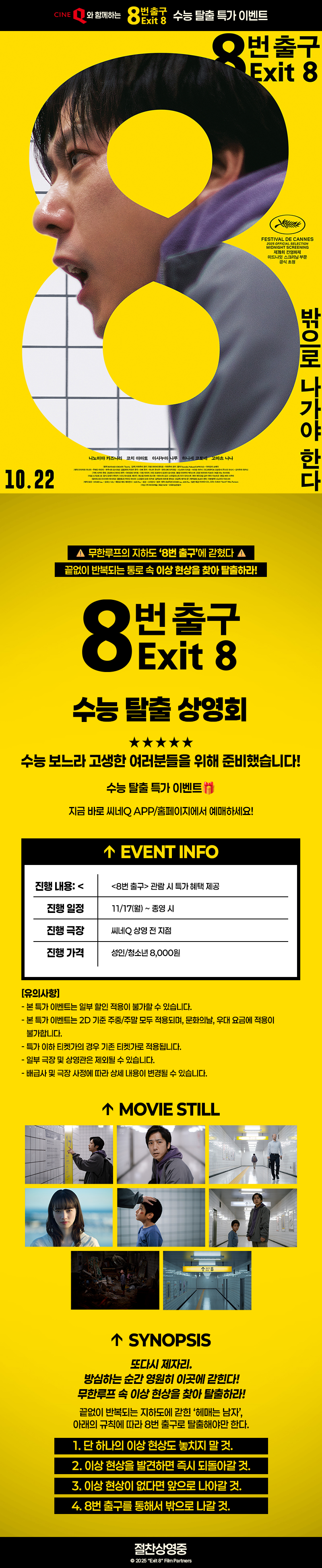| <8번 출구> 수능 탈출 특가 이벤트 | 2025.11.17~2025.11.25 | 진행중 |