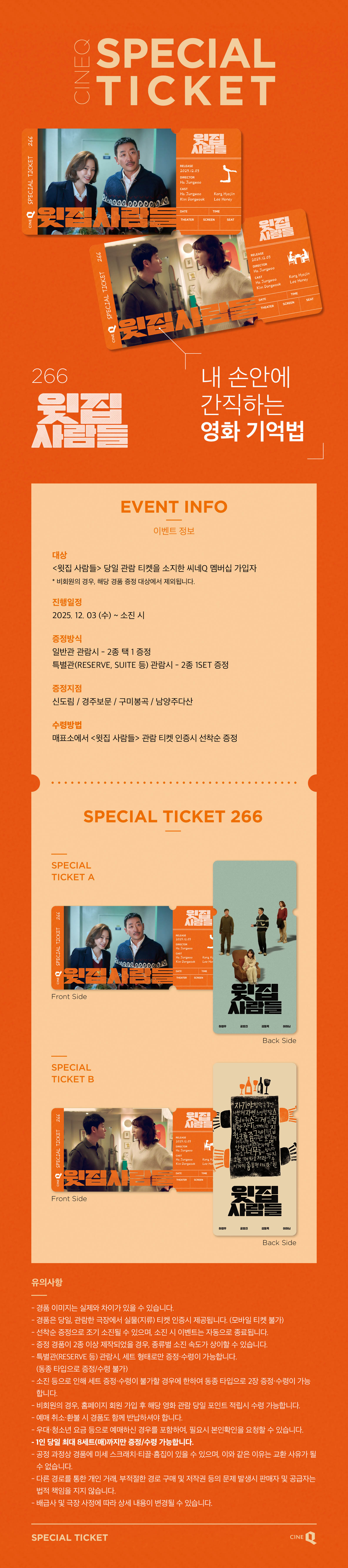 | SPECIAL TICKET 266 | 2025.12.03~2025.12.09 | 진행중 |