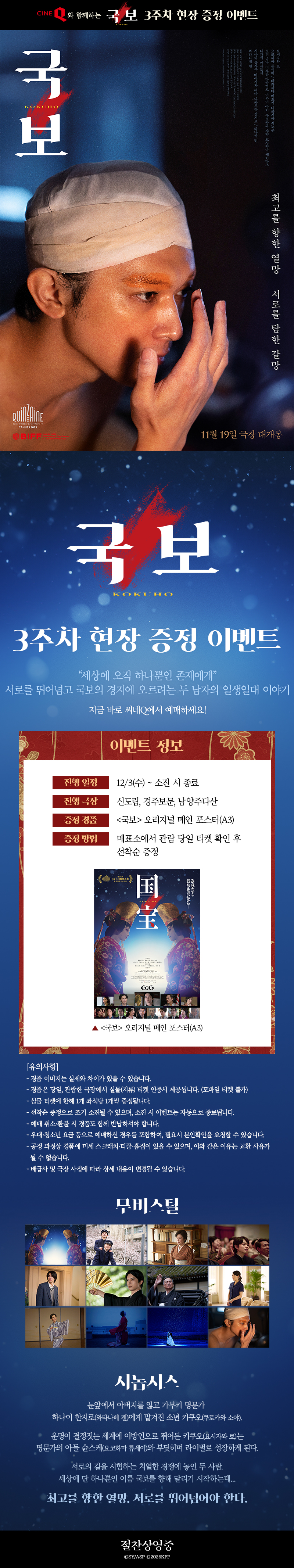 | <국보> 개봉 3주차 현장 증정 이벤트 | 2025.12.03~2025.12.09 | 진행중 |