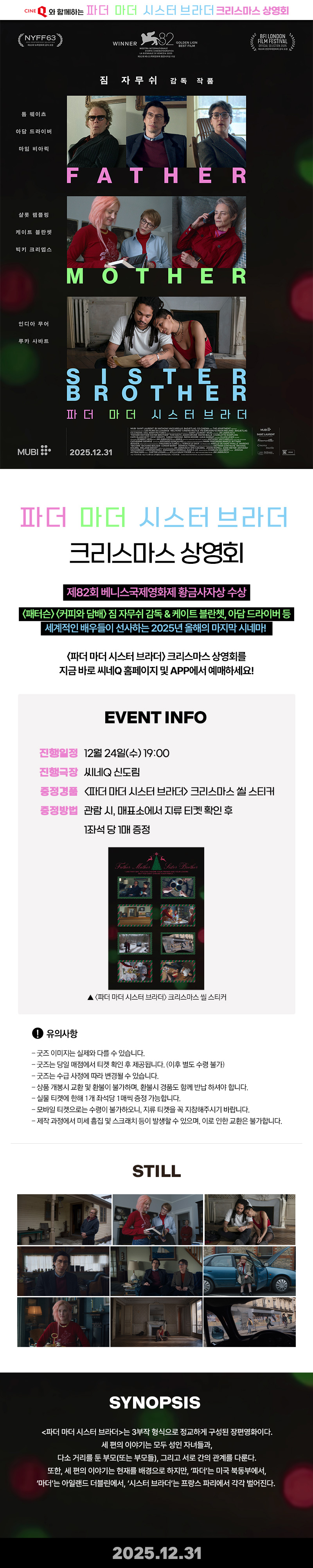 | <파더 마더 시스터 브라더> 크리스마스 상영회 | 2025.12.24~2025.12.24 | 진행중 |