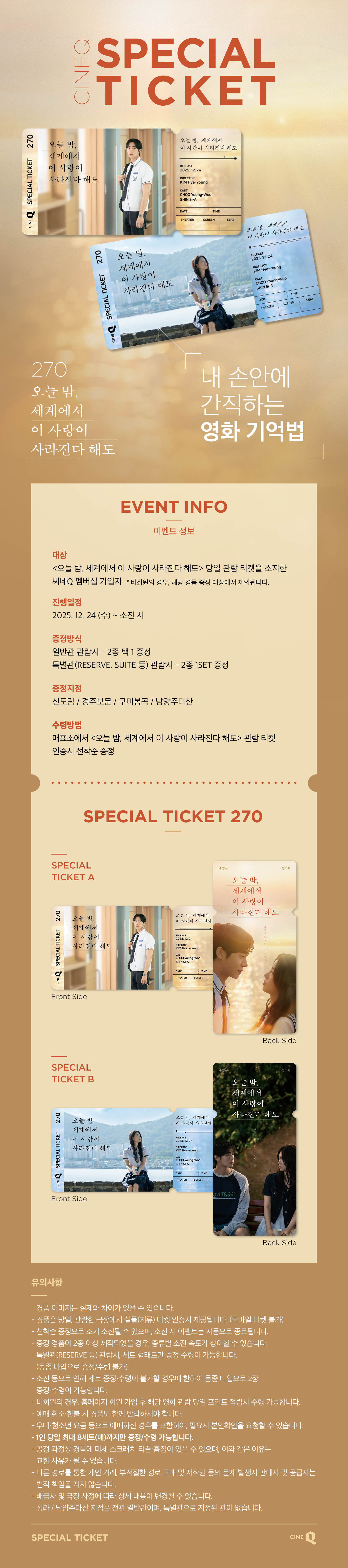 | SPECIAL TICKET 270 | 2025.12.24~2025.12.30 | 진행중 |