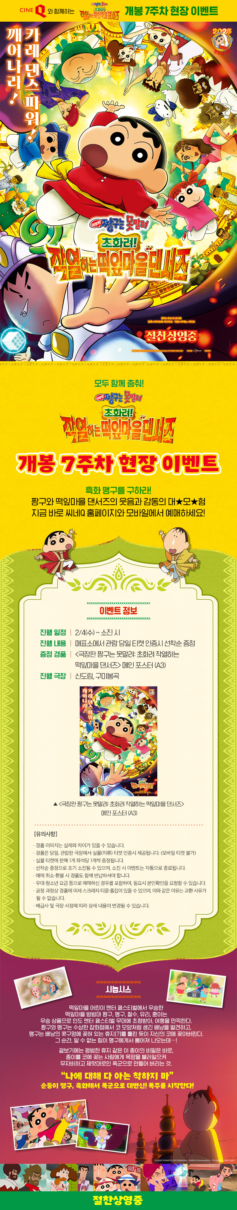 | <극장판 짱구는 못말려: 초화려! 작열하는 떡잎마을 댄서즈> 개봉 7주차 현장 이벤트 | 2026.02.04~2026.02.10 | 진행중 |