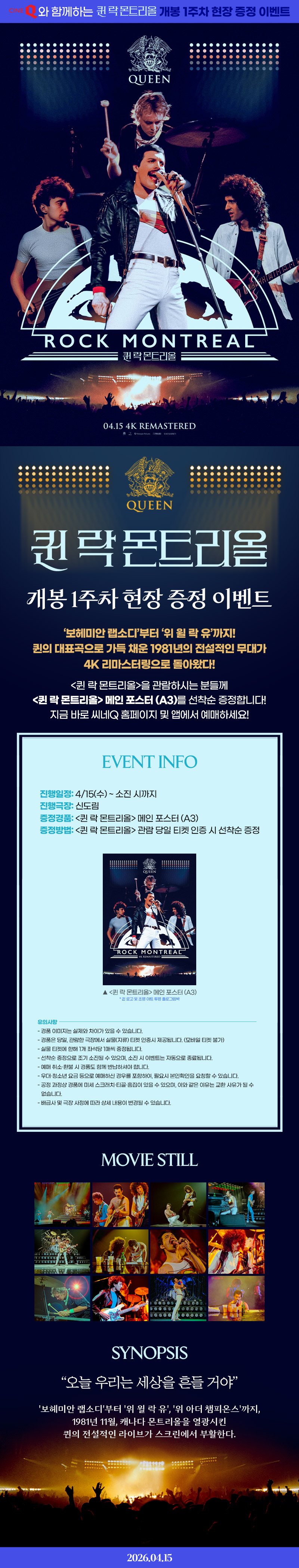 | <퀸 락 몬트리올> 개봉 1주차 현장 증정 이벤트 | 2026.04.15~2026.04.21 | 진행중 |