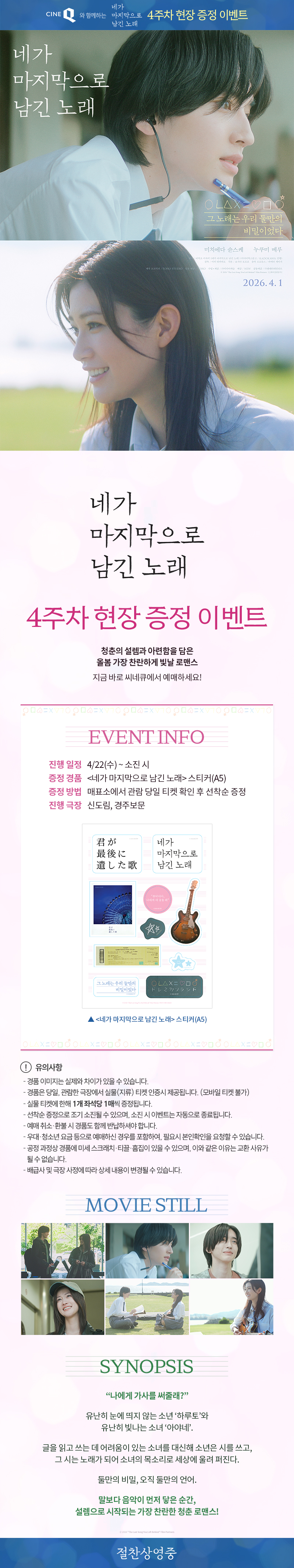 | <네가 마지막으로 남긴 노래> 4주차 현장 증정 이벤트 | 2026.04.22~2026.04.28 | 진행중 |